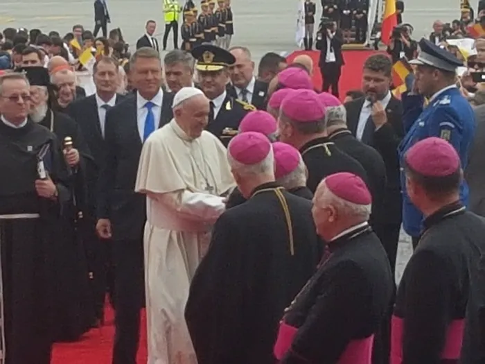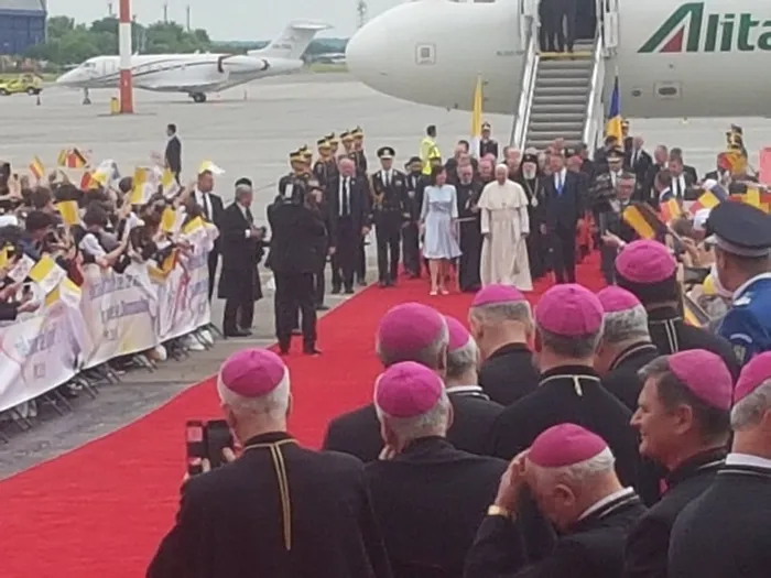 Cum e întâmpinat Papa Francisc la aeroportul Otopeni