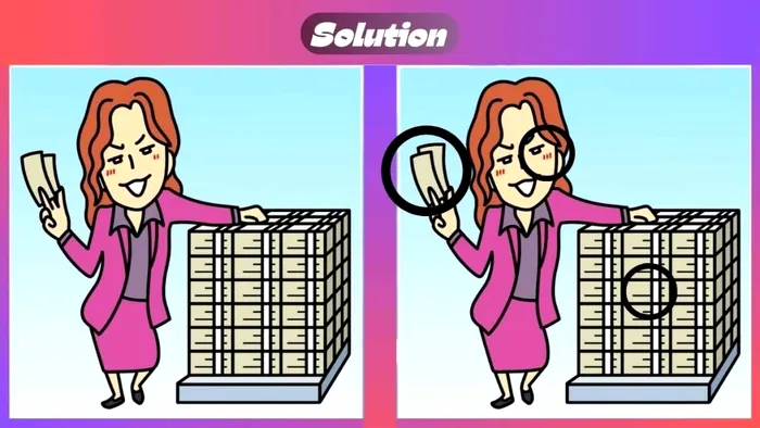 Indiferent dacă ai început provocarea singur sau ai solicitat ajutorul unui partener, tot puteți afla cum stați la capitolul inteligență. Dacă nu ați reușit să descoperiți greșelile ascunse în acest test, nu este problemă. Mai jos aveți rezolvarea corectă! Cei cu ochi de vultur au observat că diferențele erau la mână, ochi și la teancul de bani!