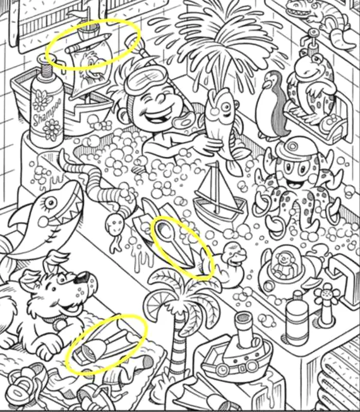 Astăzi, vă provocăm la un joc destul de interesant, unde trebuie să găsești obiectele ascunse în imaginea de mai sus. În poză este prezentat un băiat care face baie într-o cadă, dar în scenă mai există și diferite obiecte care nu sunt la vedere. Provocarea este să le găsiți în mai puțin de 10 secunde!
