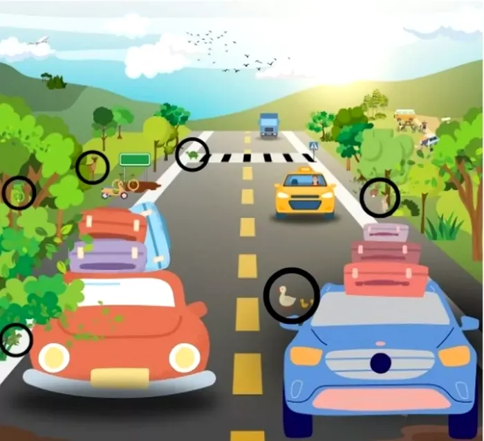 Deci, le-ai găsit pe toate? Dacă nu, vă dăm un indiciu. Deși puteți vedea clar un stol de păsări pe cer în partea de sus a imaginii, acestea nu sunt considerate unul dintre cele șase animale pe care le căutăm. În realitate, căutăm animale care pot reprezenta un pericol pentru șoferi.